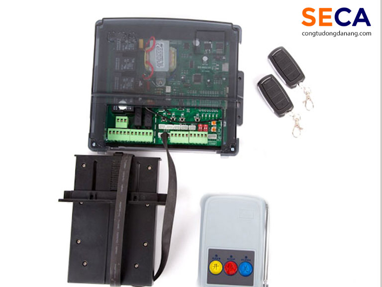 Điều khiển cổng xếp inox tự động bằng hộp điều khiển cố định